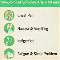 The symptoms ( symptoms may vary from person to person ) of CAD are : Chest pain , shortness of breath , cramping , nausea etc .